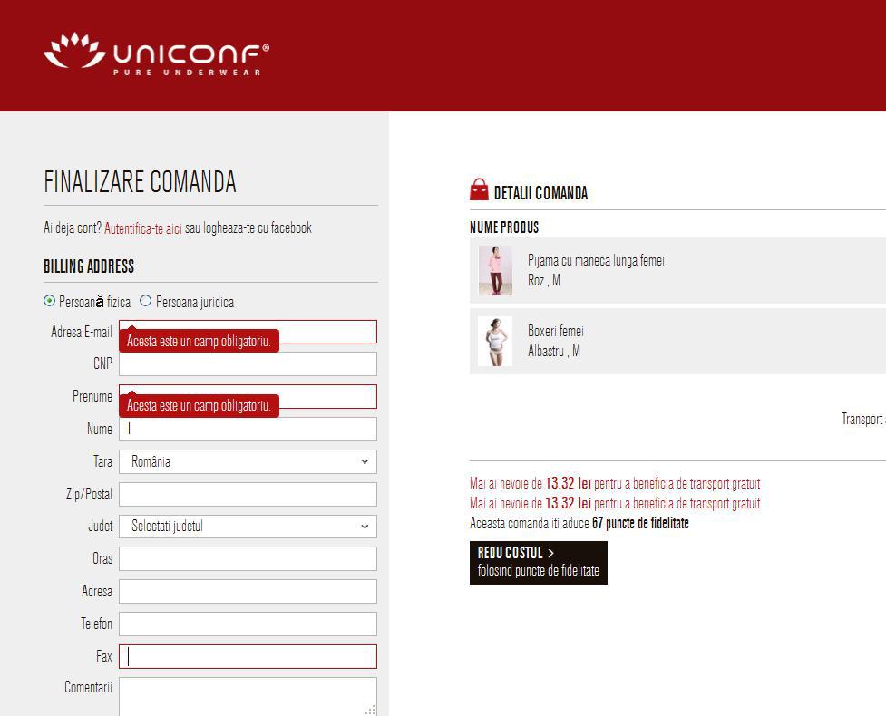Pasul 6: Completezi datele necesare livrarii, si selectezi modalitatea de plata. Nu uita sa confirmi ca esti de acord cu Termenii si conditiile siteului pentru a putea finaliza comanda